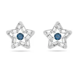 Swarovski Stella Stud Earrings Mixed Cuts, Star, Blue, Rhodium Plated
