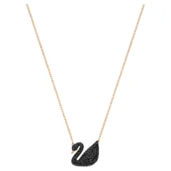 Swarovski Iconic Swan Pendant Swan, Medium, Black, Rose Gold-tone Plated