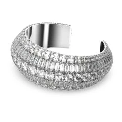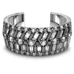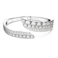 Swarovski Hyperbola Bangle Carbon Neutral Zirconia, Mixed Cuts, White, Rhodium Plated