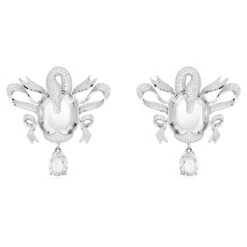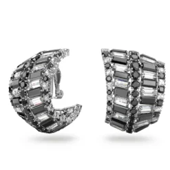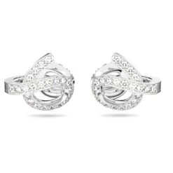 Swarovski Hyperbola Clip Earrings Carbon Neutral Zirconia, Mixed Cuts, White, Rhodium Plated