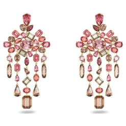 Swarovski Gema Clip Earrings Mixed Cuts, Chandelier, Extra Long, Multicolored, Gold-tone Plated