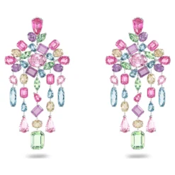 Swarovski Gema Clip Earrings Mixed Cuts, Chandelier, Extra Long, Multicolored, Rhodium Plated
