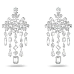 Swarovski Gema Clip Earrings Mixed Cuts, Chandelier, Extra Long, White, Rhodium Plated