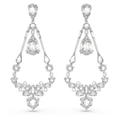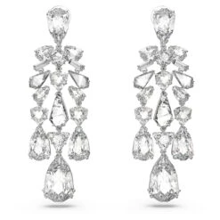 Swarovski Orbita Clip Earrings Asymmetrical Design, Drop Cut, Multicolored, Rhodium Plated
