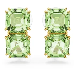 Swarovski Orbita Clip Earrings Asymmetrical Design, Octagon Cut, Multicolored, Gold-tone Plated