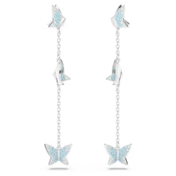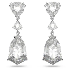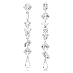 Swarovski Mesmera Drop Earrings Asymmetrical Design, Mixed Cuts, Long, White, Rhodium Plated