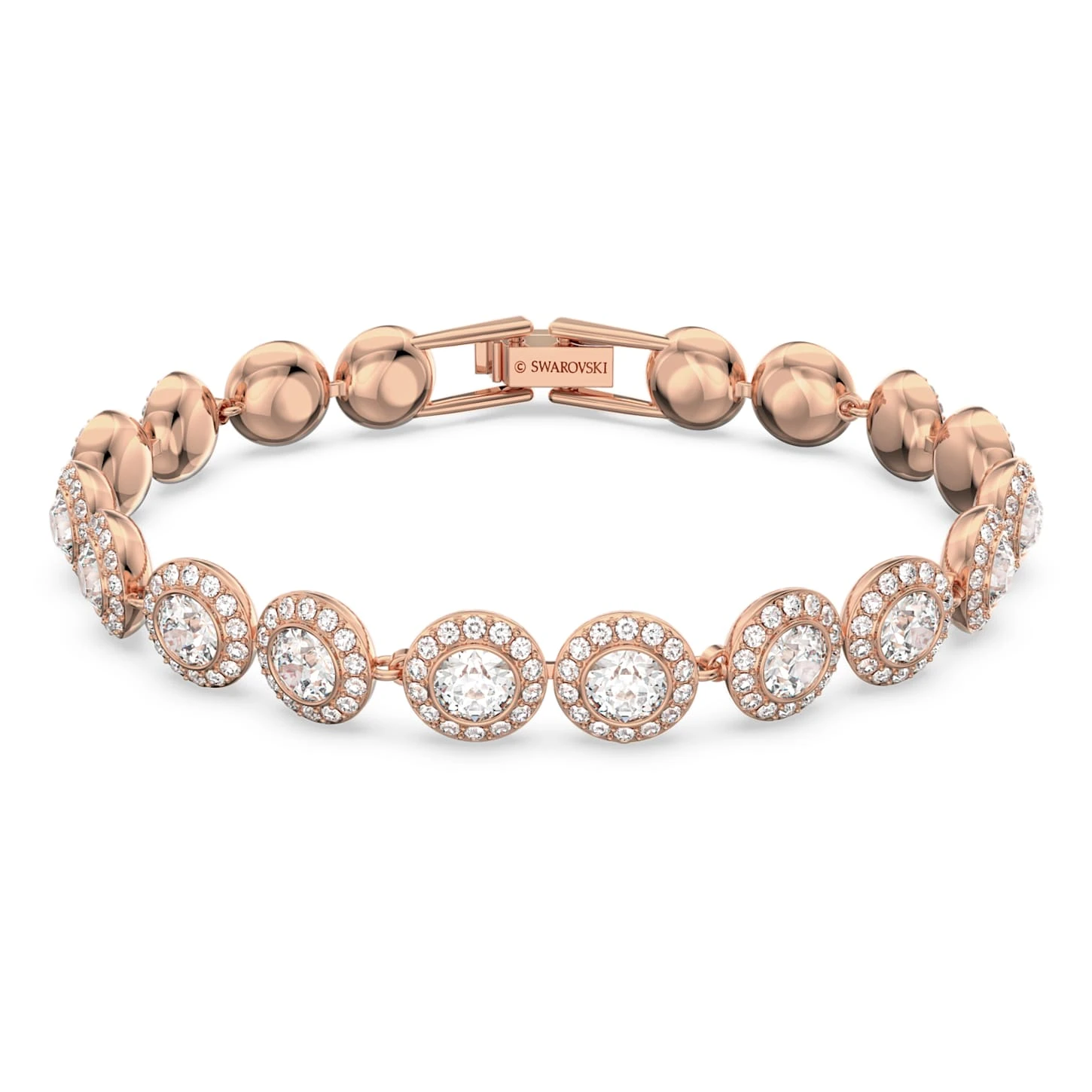 Pure, timeless sophistication. With a stunning mix of rose gold-plated metal and crystal pavé, this bracelet adds a feminine sparkle to any look. It combines perfectly with other pieces from the Angelic family. Wear it with a Swarovski watch for a stylish daytime look. The bracelet measures 17 cm.