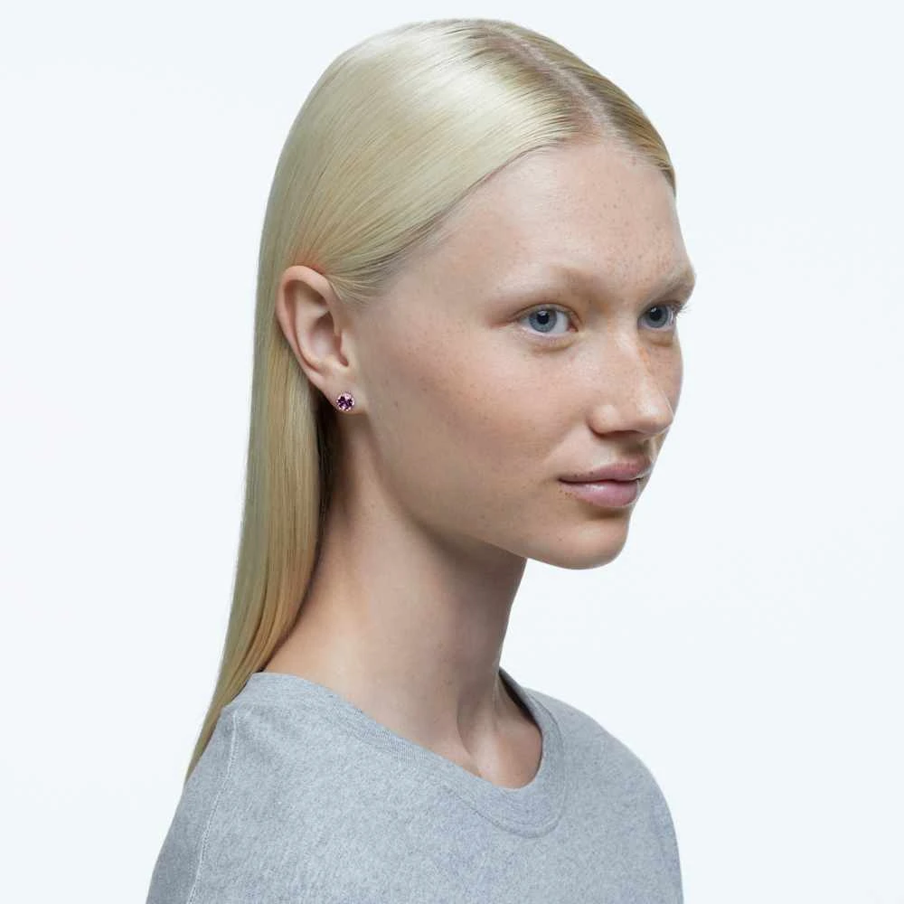 Swarovski Birthstone Stud Earrings Round Cut, February, Purple, Rhodium Plated