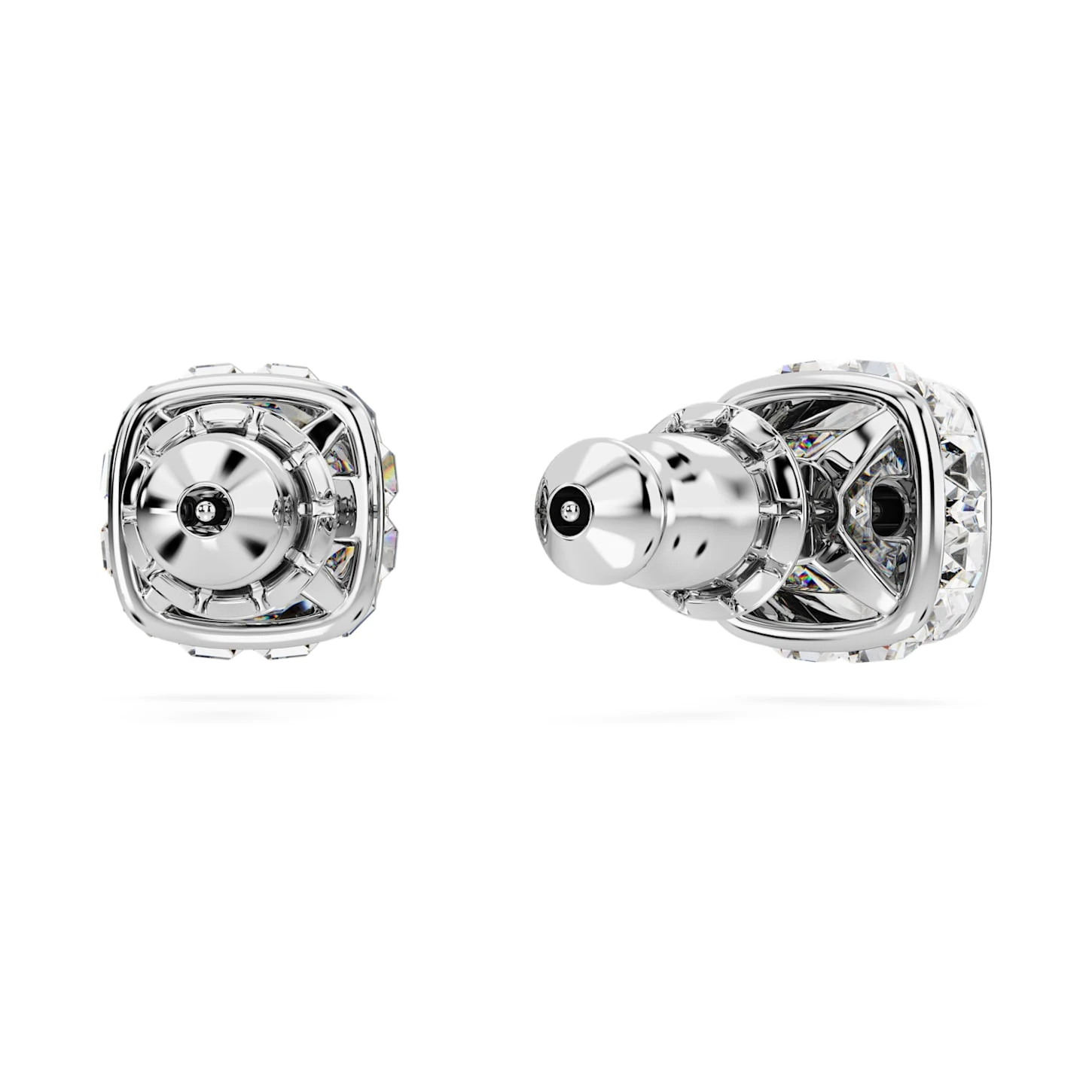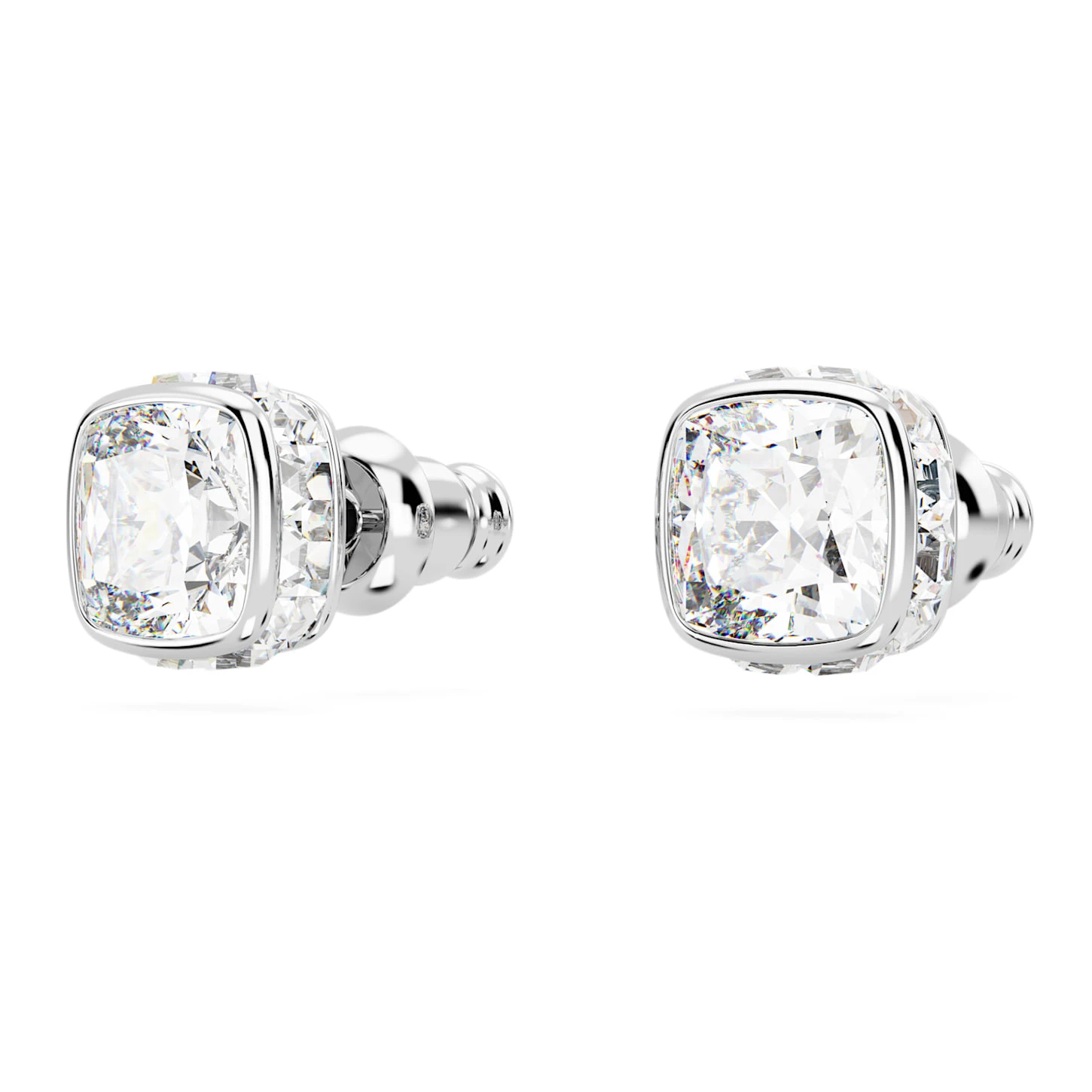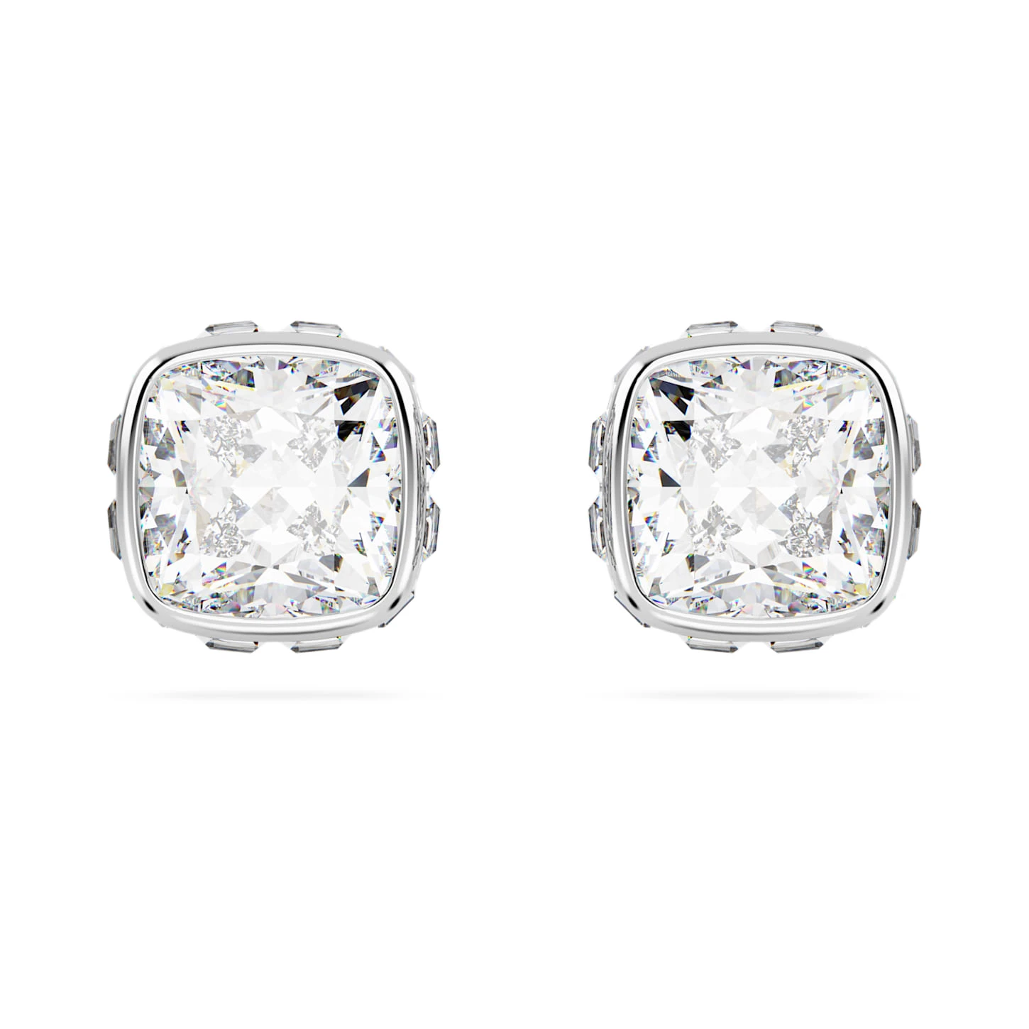 Swarovski Birthstone Stud Earrings Square Cut, April, White, Rhodium Plated