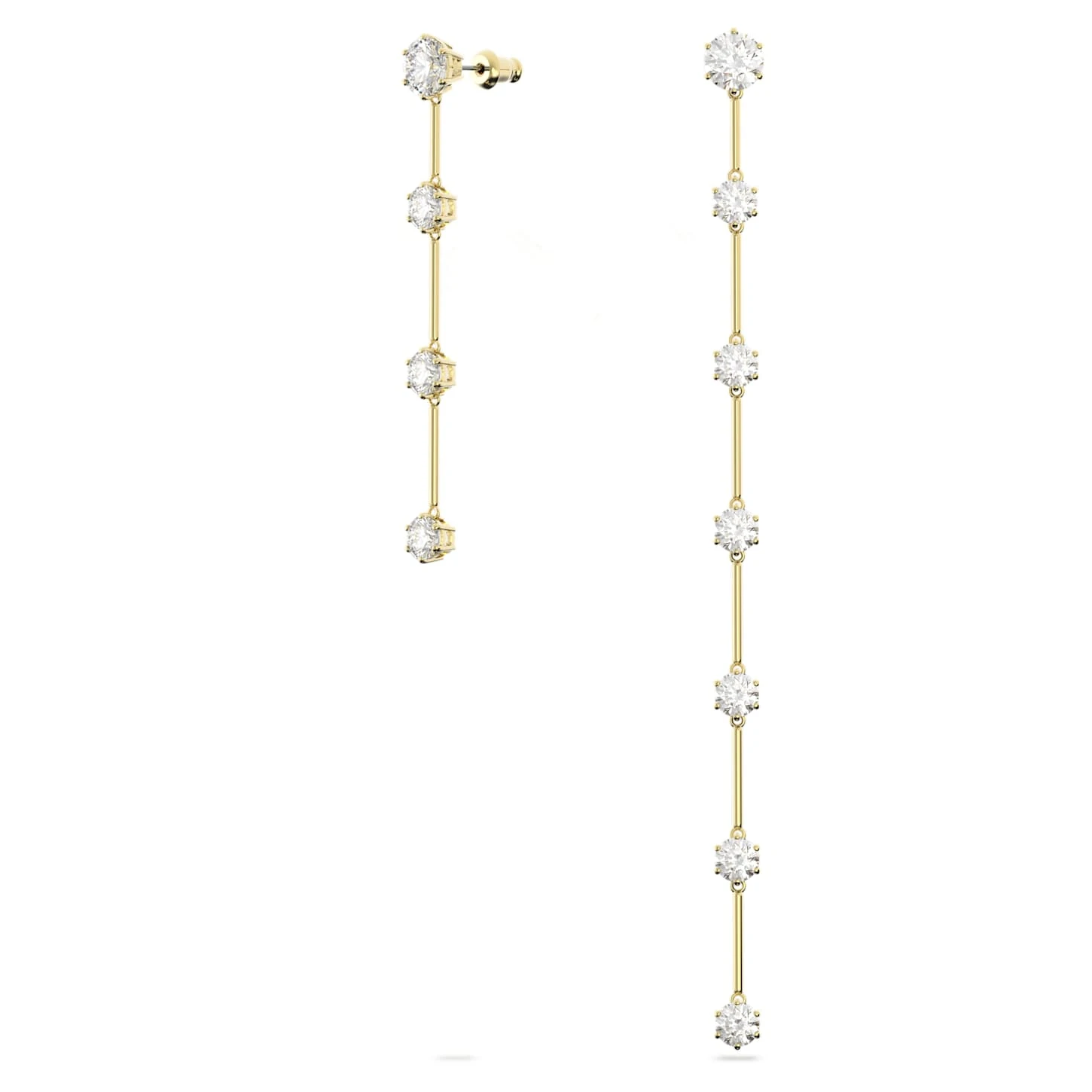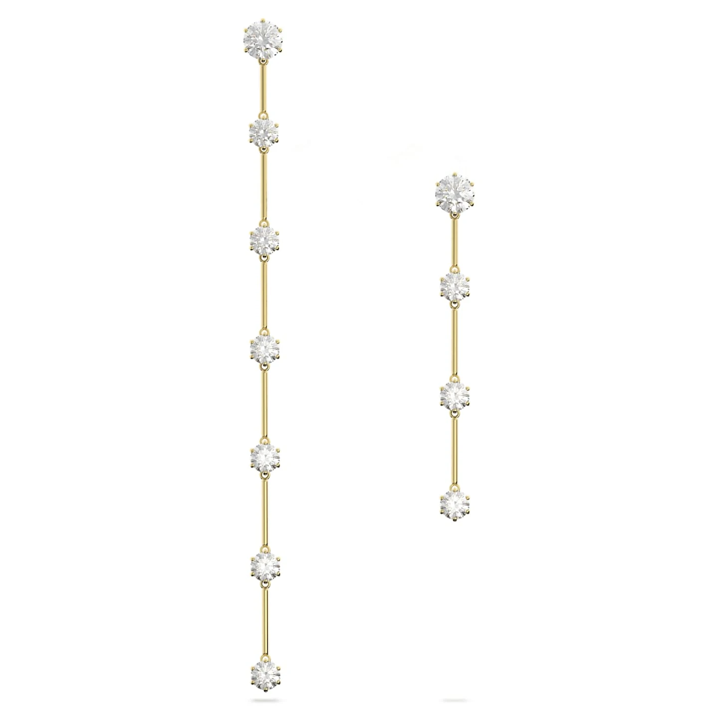 Swarovski Constella Drop Earrings Asymmetrical Design, Round Cut, White, Shiny gold-tone Plated