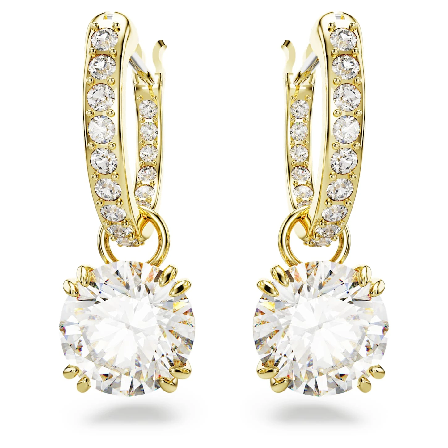 Swarovski Constella Drop Earrings Round Cut, White, Gold-tone Plated