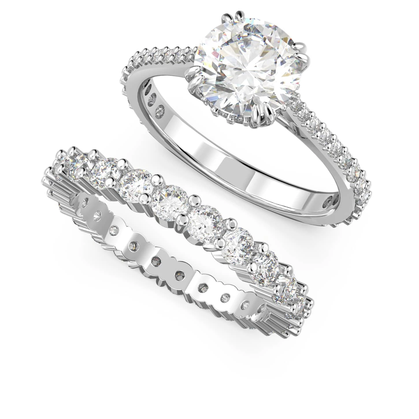 Swarovski Constella Ring Set (2), Princess Cut, White, Rhodium Plated