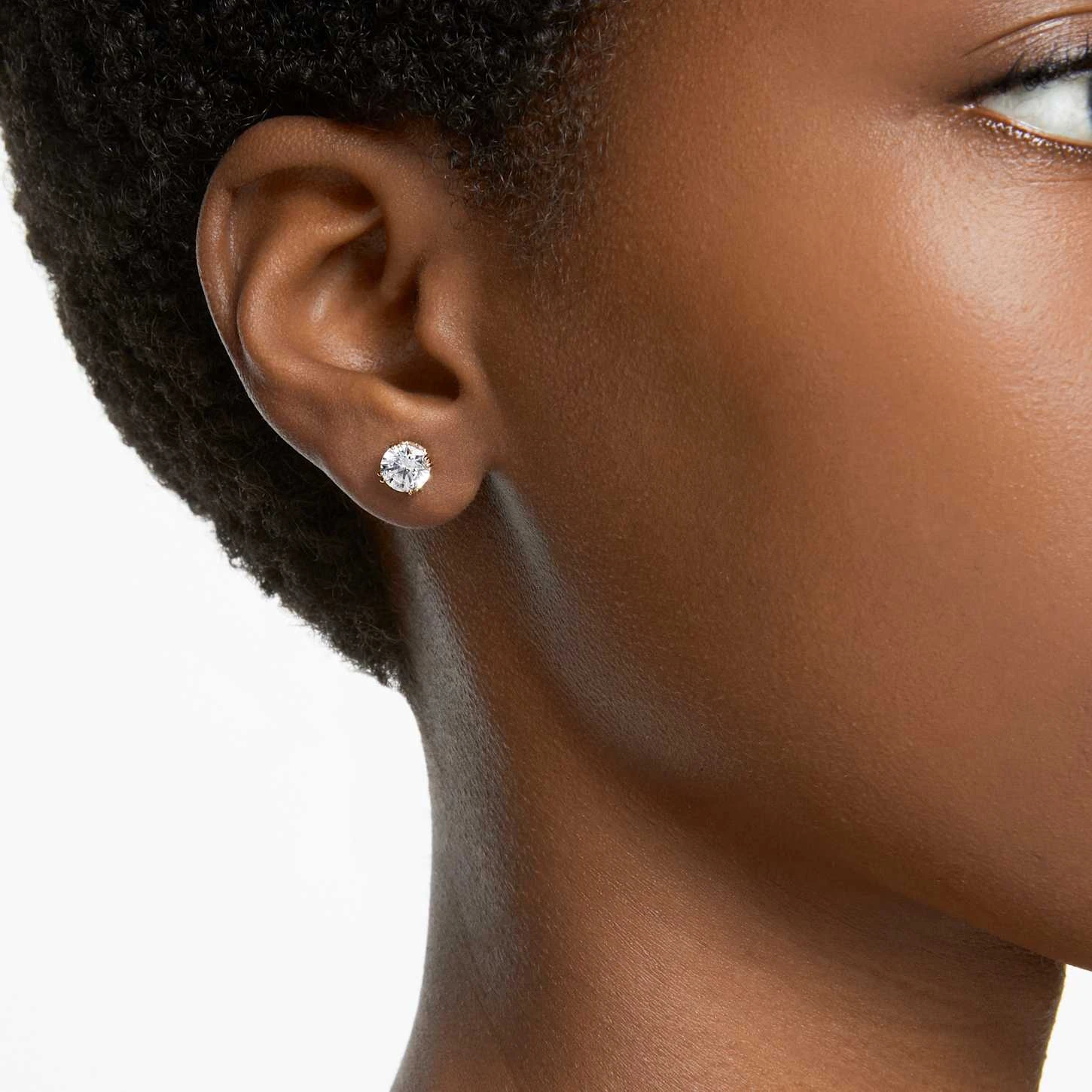 Swarovski Constella Stud Earrings Round Cut, White, Gold-tone Plated