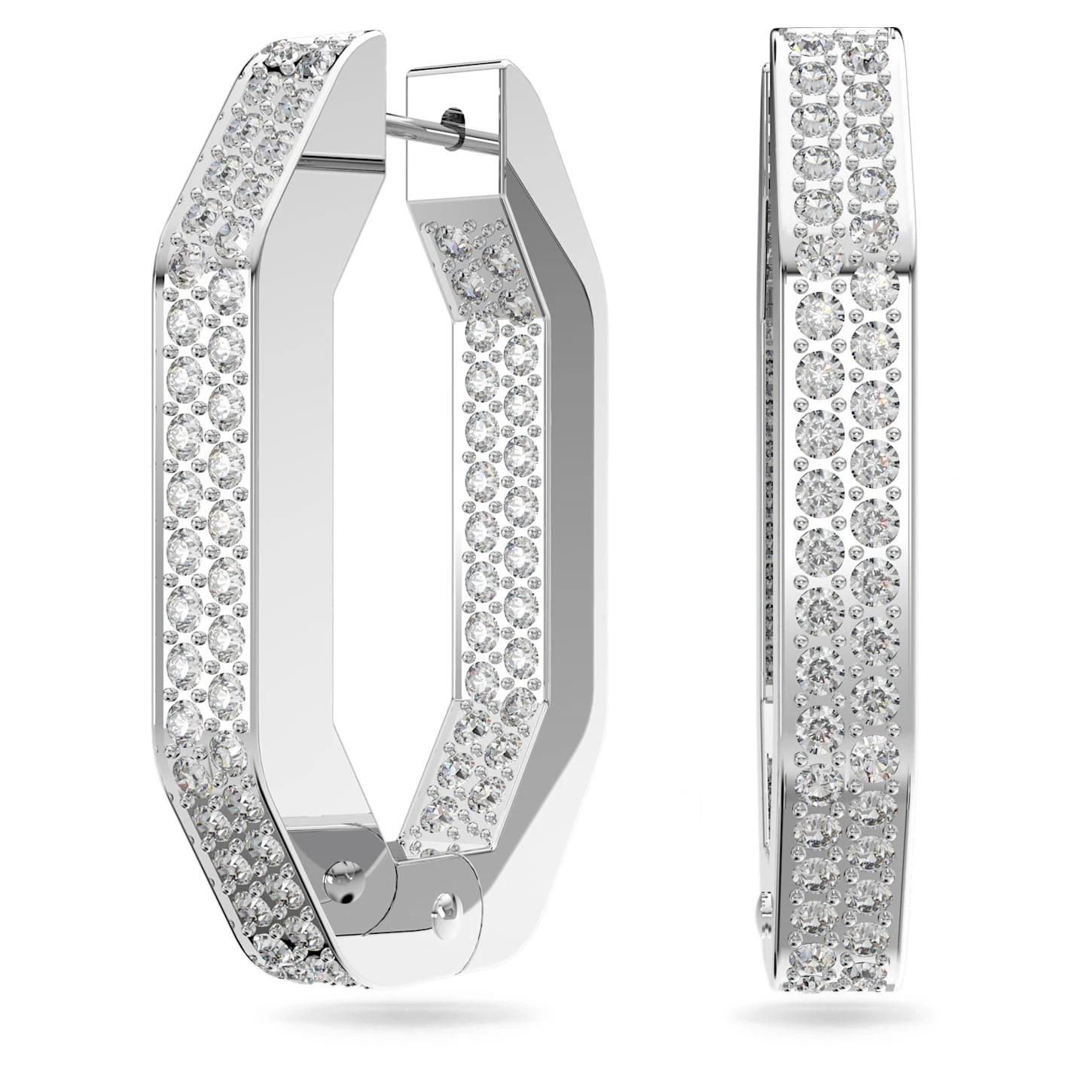 Swarovski Dextera Hoop Earrings Octagon Shape, Medium, White, Rhodium Plated