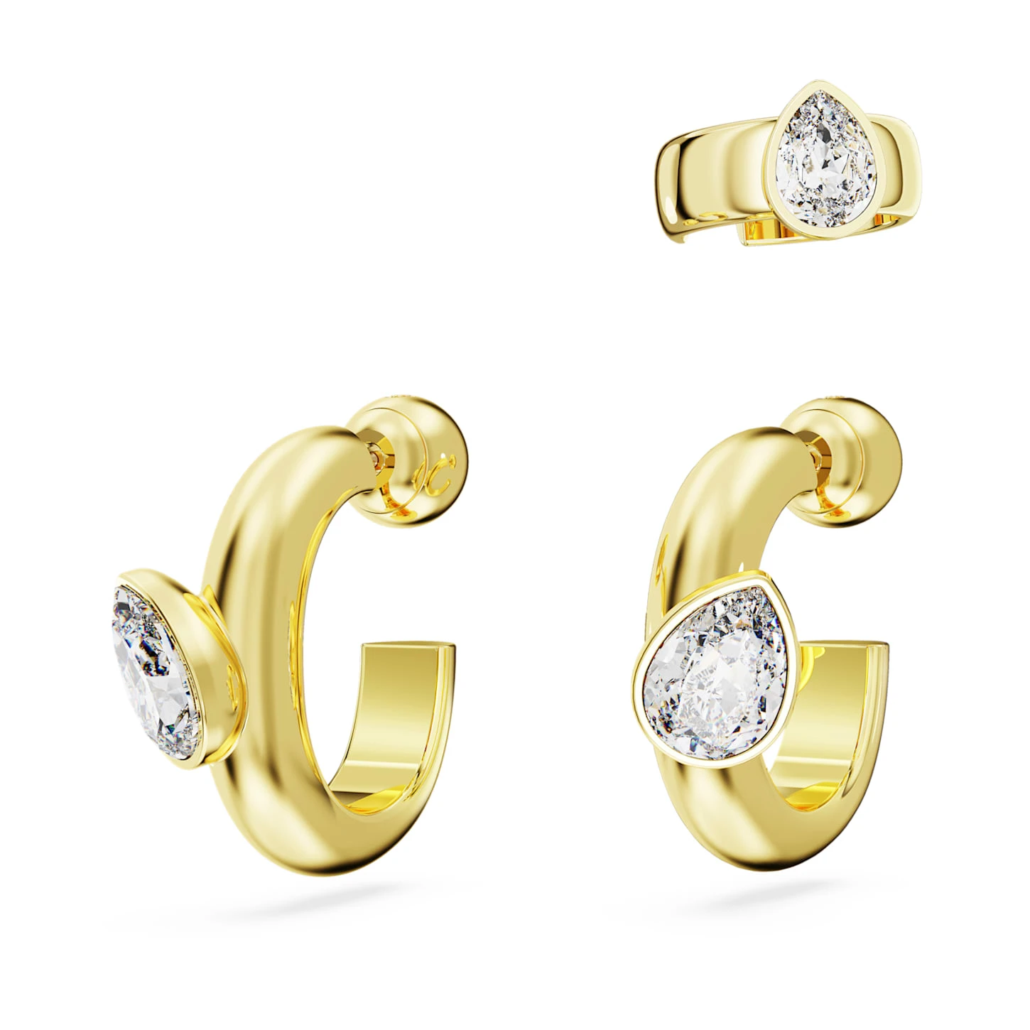 Swarovski Dextera Hoop Earrings With Ear Cuff Set (3), Pear Cut, White, Gold-tone Plated