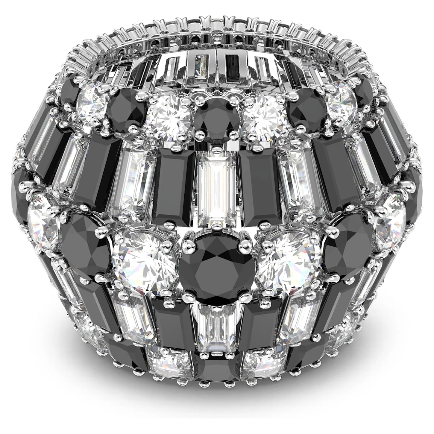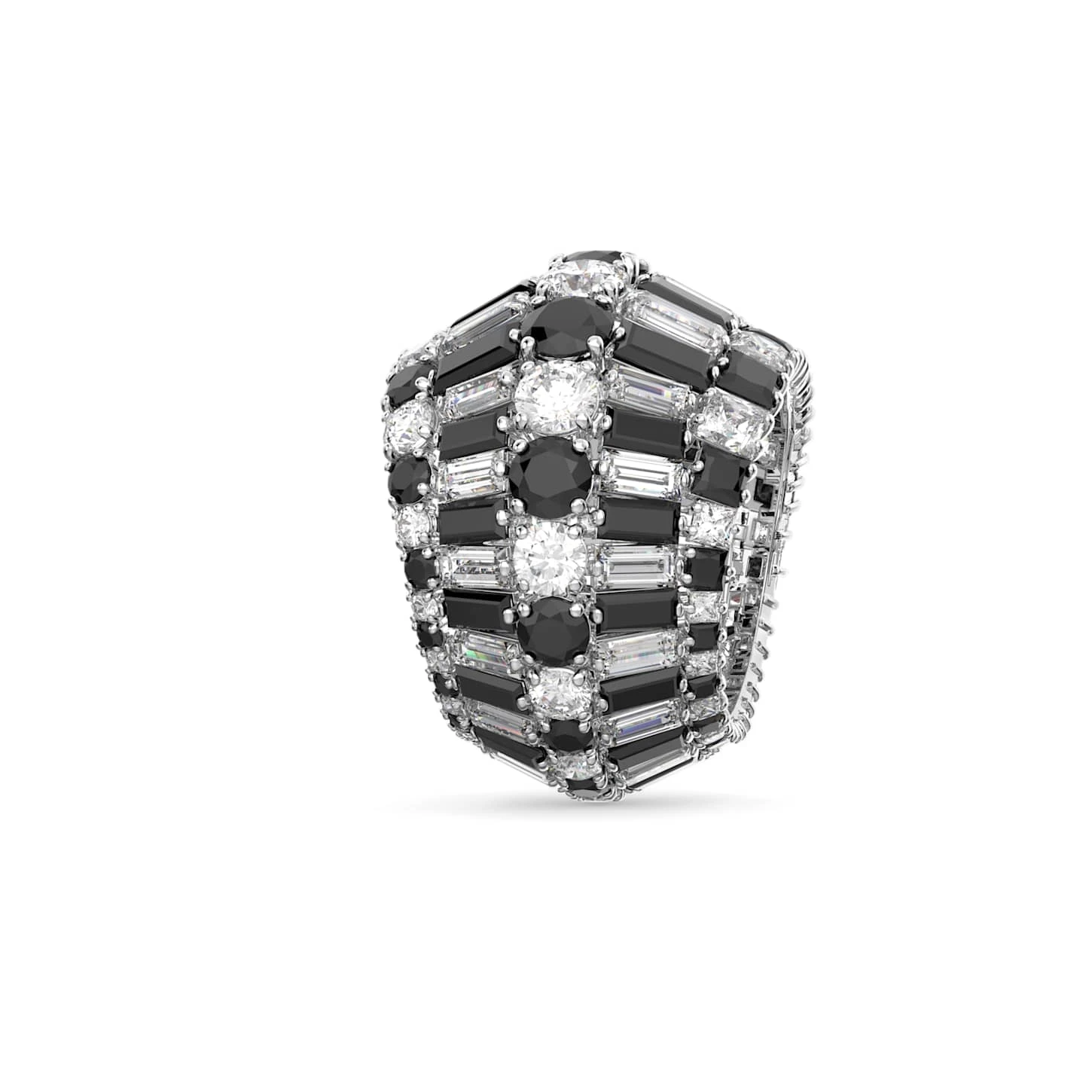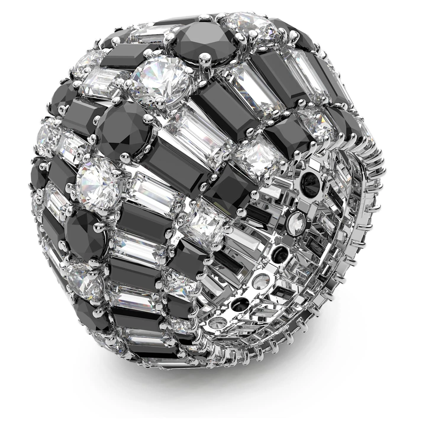 Swarovski Hyperbola Cocktail Ring Mixed Cuts, Black, Rhodium Plated