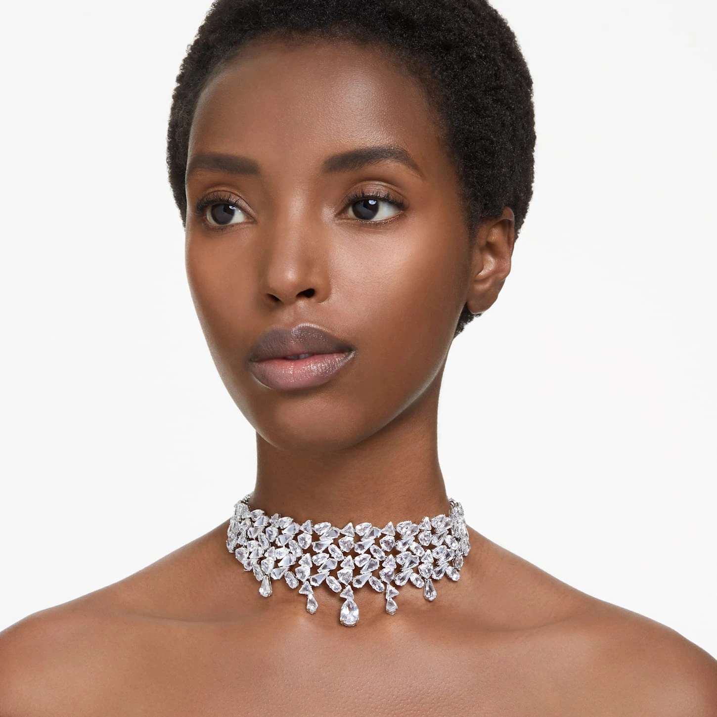 Swarovski Mesmera Choker Mixed Cuts, White, Rhodium Plated