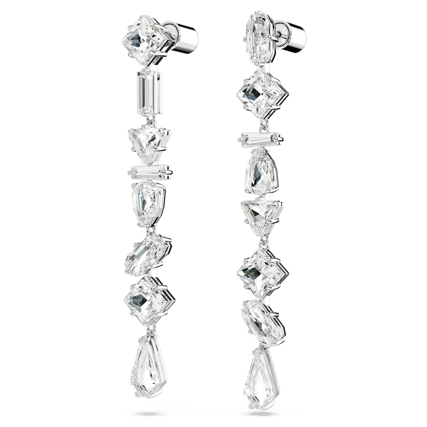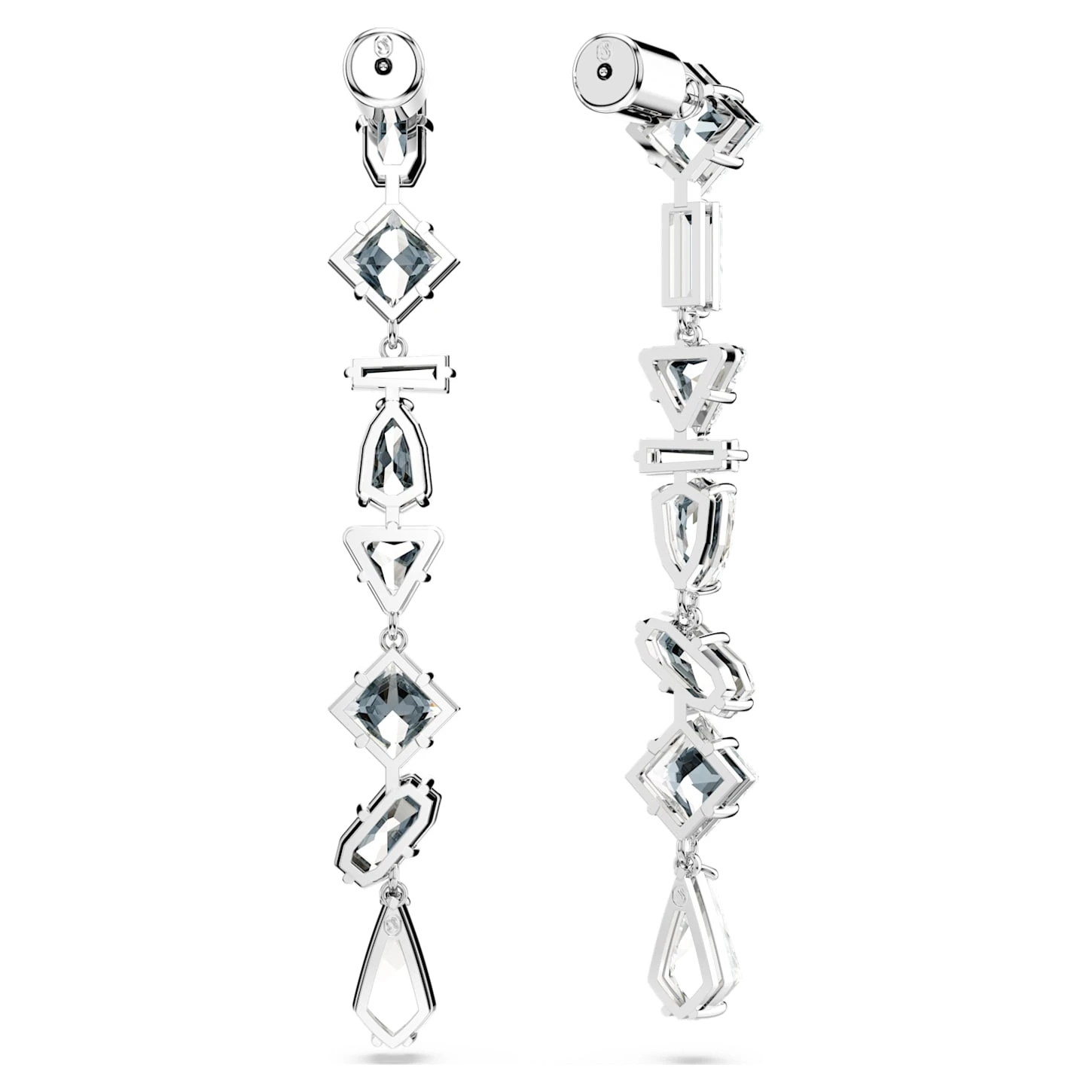 Swarovski Mesmera Drop Earrings Asymmetrical Design, Mixed Cuts, Long, White, Rhodium Plated