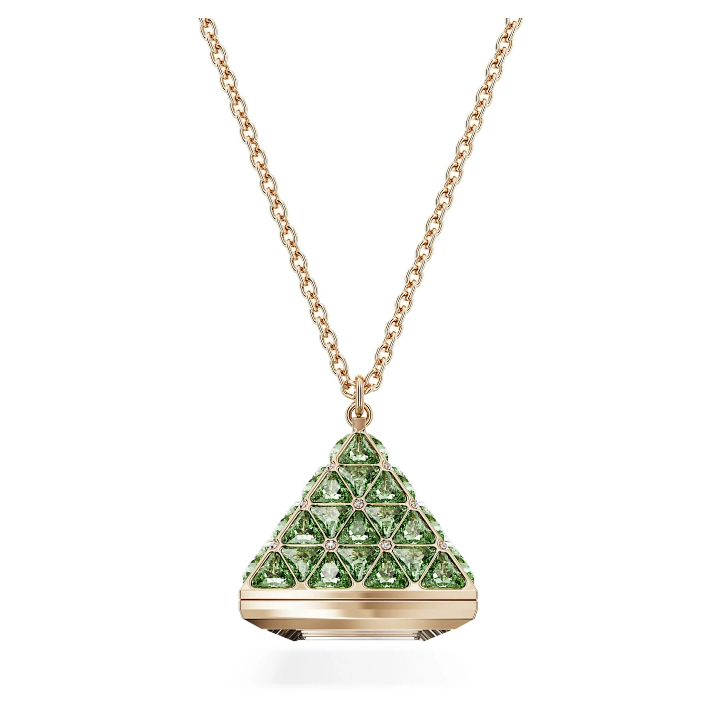 Swarovski Pendant Watch Triangle Cut, Green, Champagne Gold-tone Finish