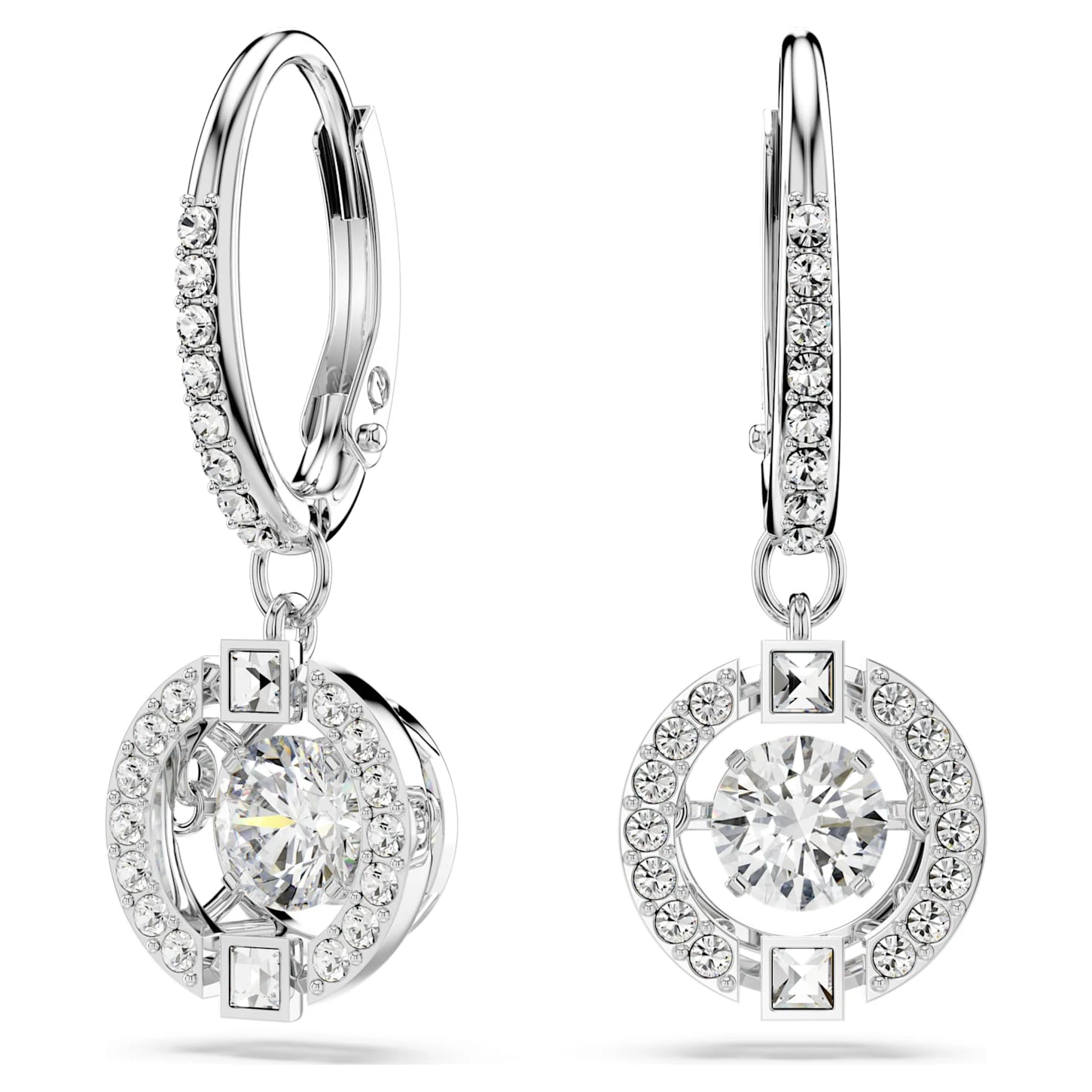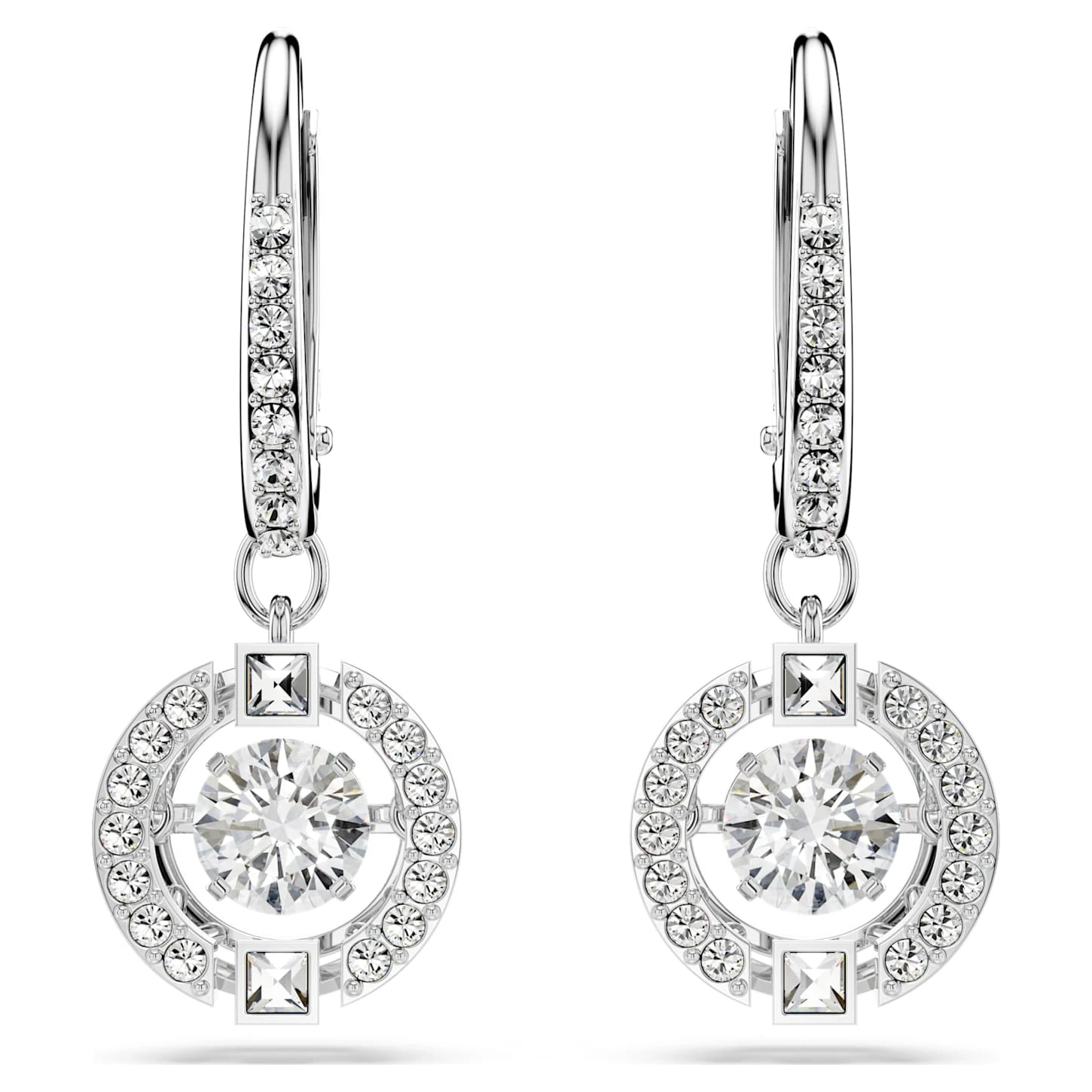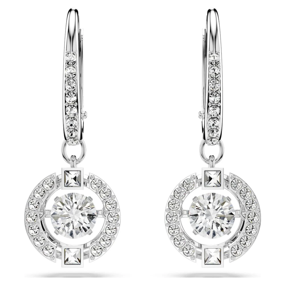Swarovski Sparkling Dance Drop Earrings Round Cut, White, Rhodium Plated