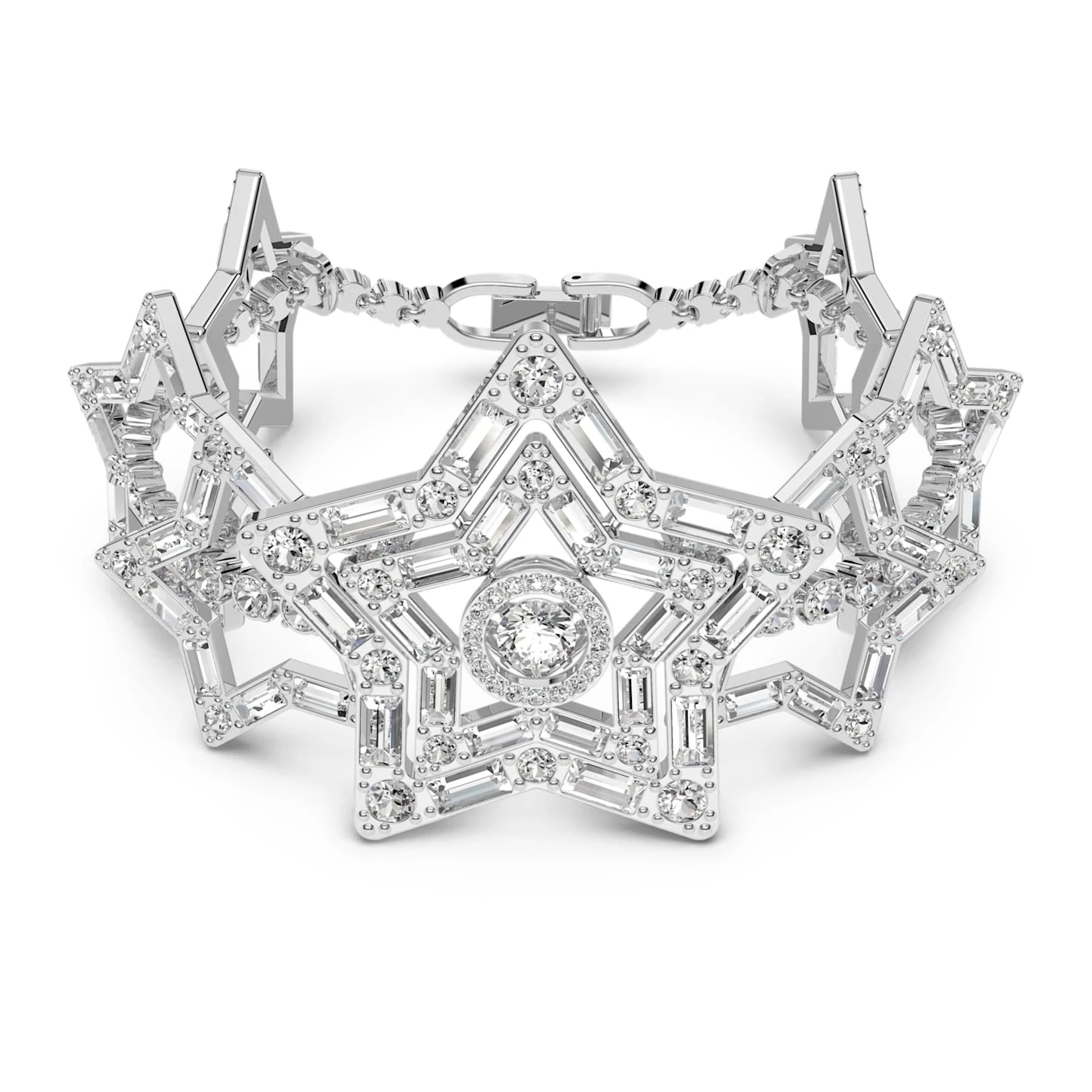 Swarovski Stella Bracelet Mixed Cuts, Star, Large, White, Rhodium Plated