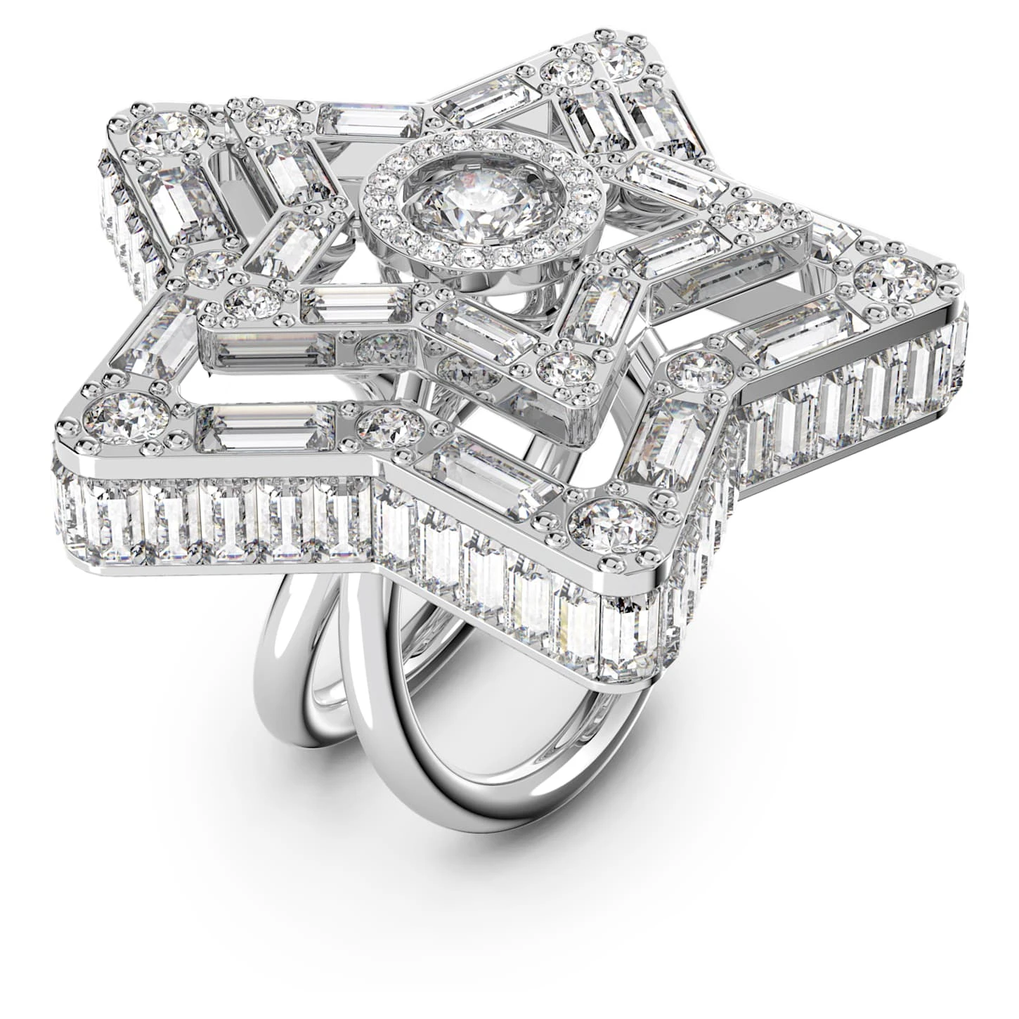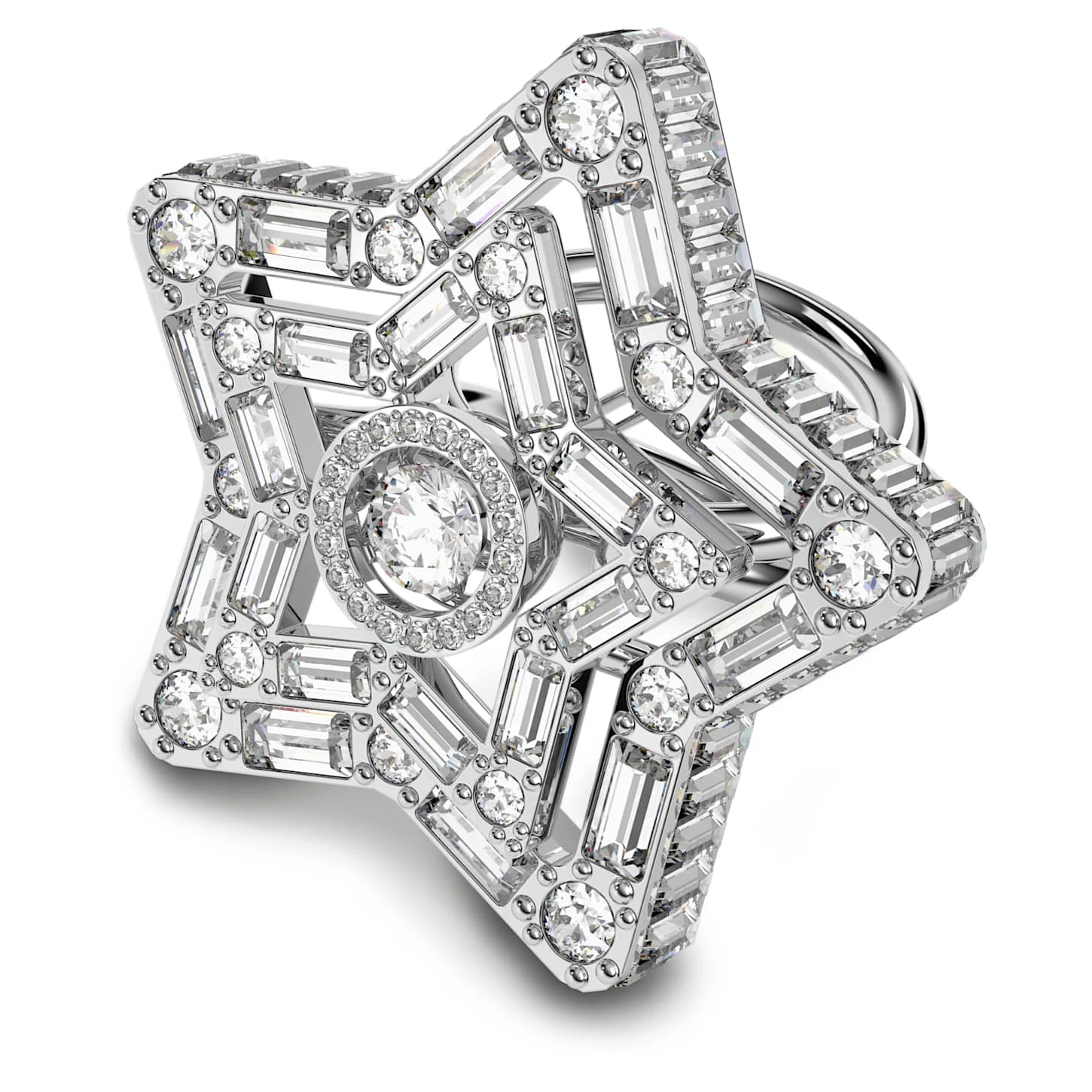 Swarovski Stella Cocktail Ring Mixed Cuts, Star, White, Rhodium Plated