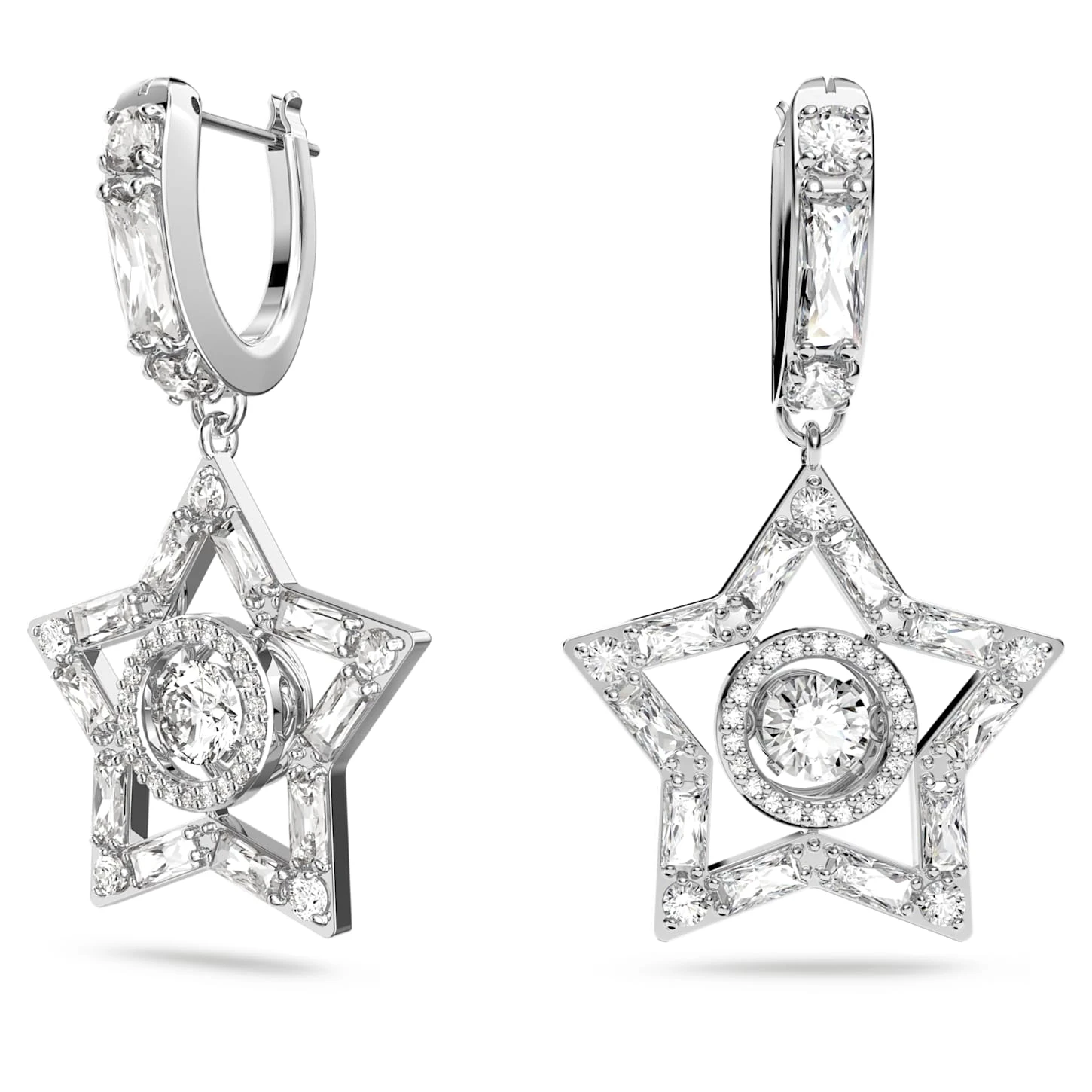 Swarovski Stella Drop Earrings Mixed Cuts, Star, White, Rhodium Plated