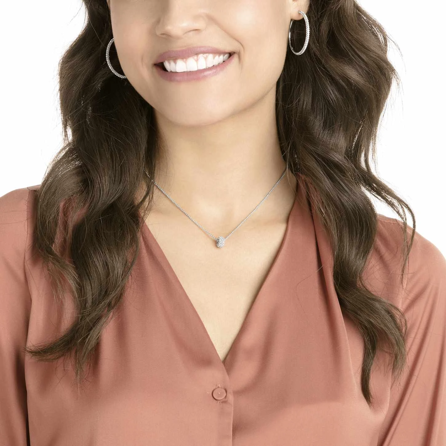 Find the perfect gift for Mother’s Day or any other occasion with this timeless set, decorated with crystal pavé for that special Swarovski sparkle. True jewelry box essentials, the pendant and earrings are rhodium-plated and combine easily with any outfit. The pendant comes on a chain.