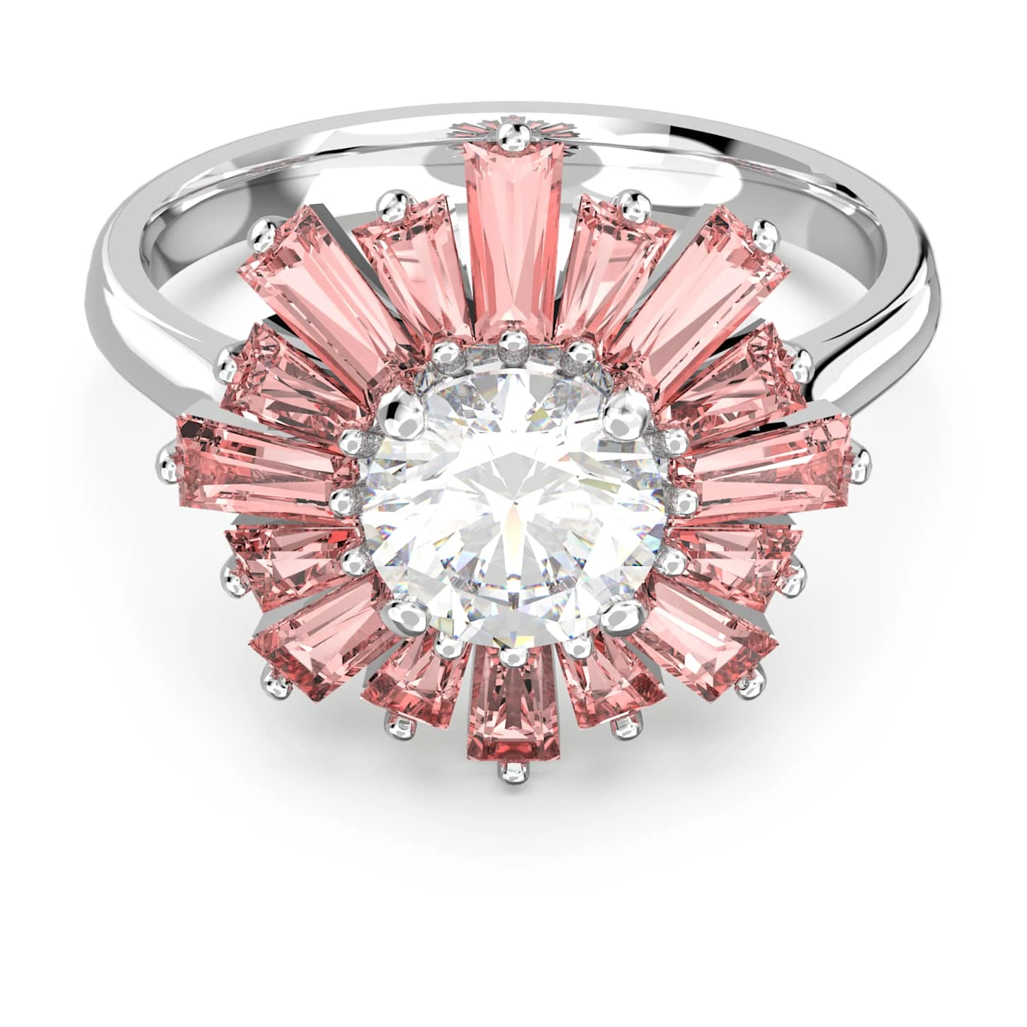 Swarovski Sunshine Ring Mixed Cuts, Sun, Pink, Rhodium Plated