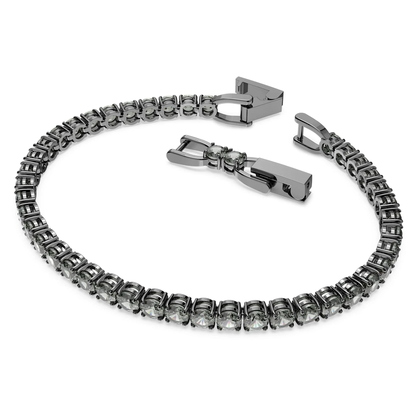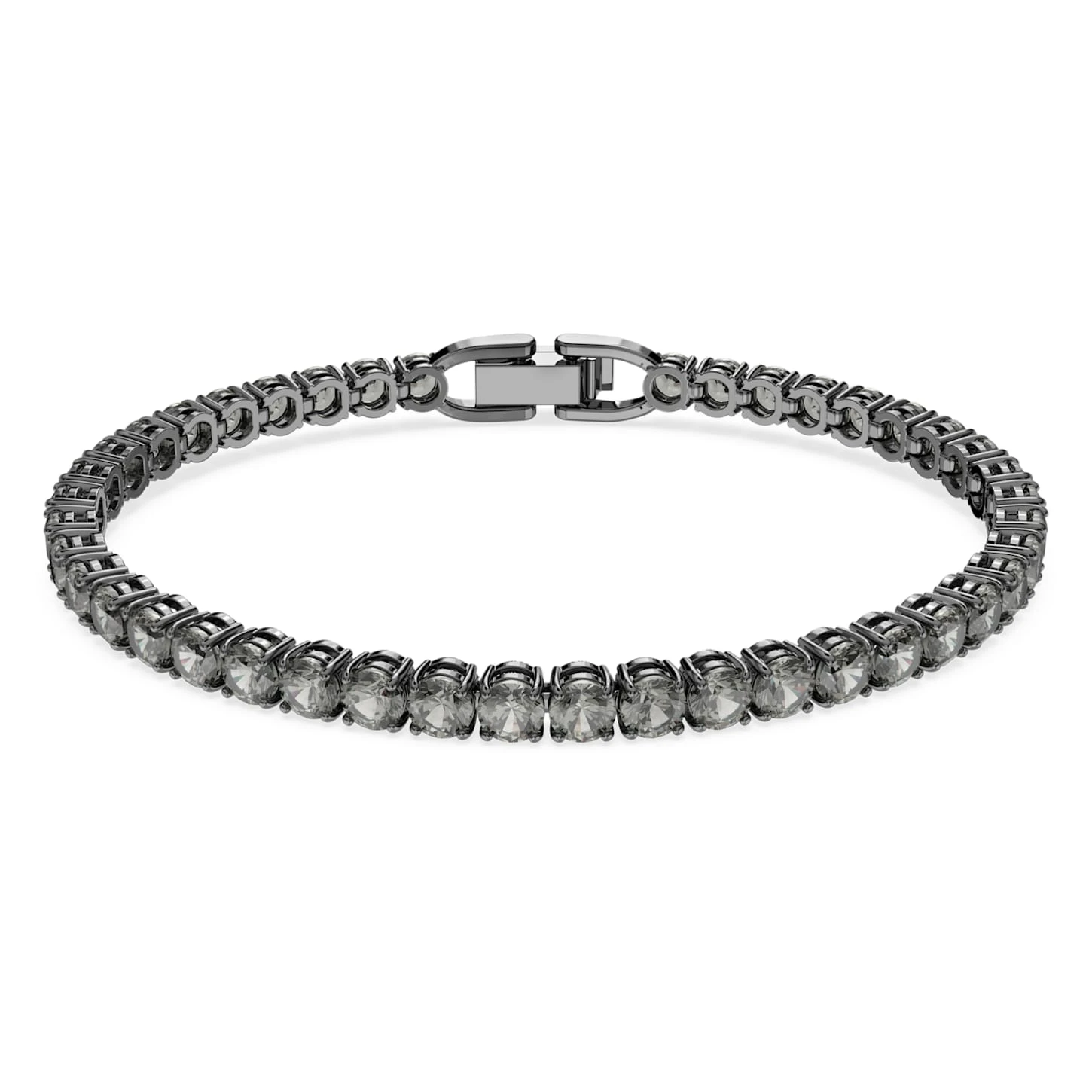 Swarovski Tennis Deluxe Bracelet Round Cut, Gray, Ruthenium Plated